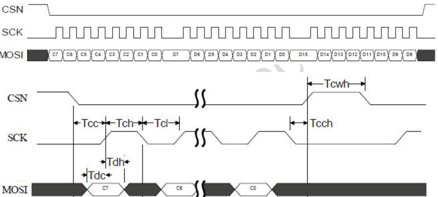 其中MOSI 信号用于输入和输出。MCU 可以用3 个GPIO 模拟SPI,我们提供3 线SPI 的参考C 源码。